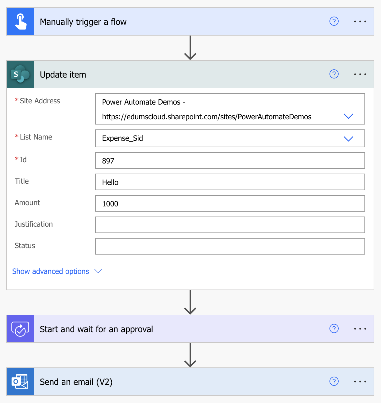 Note: The SharePoint item ID is not on the list. This will make the flow fail.